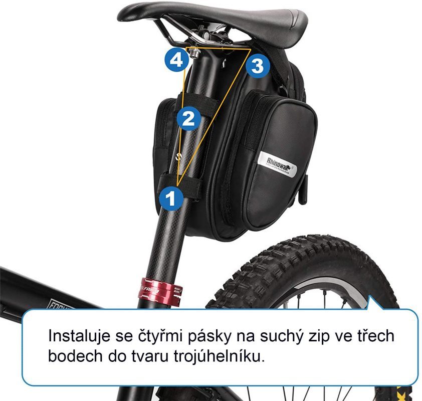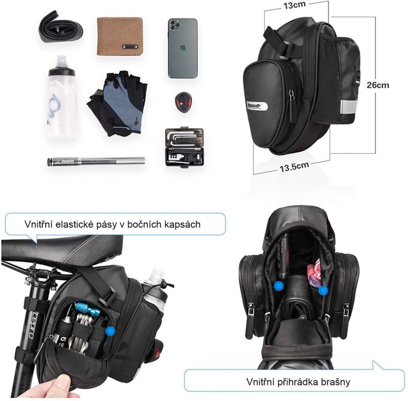 Vodotěsná brašna pod sedlo kola s mnoha kapsami pro organizaci Vašeho cyklistického vybavení.