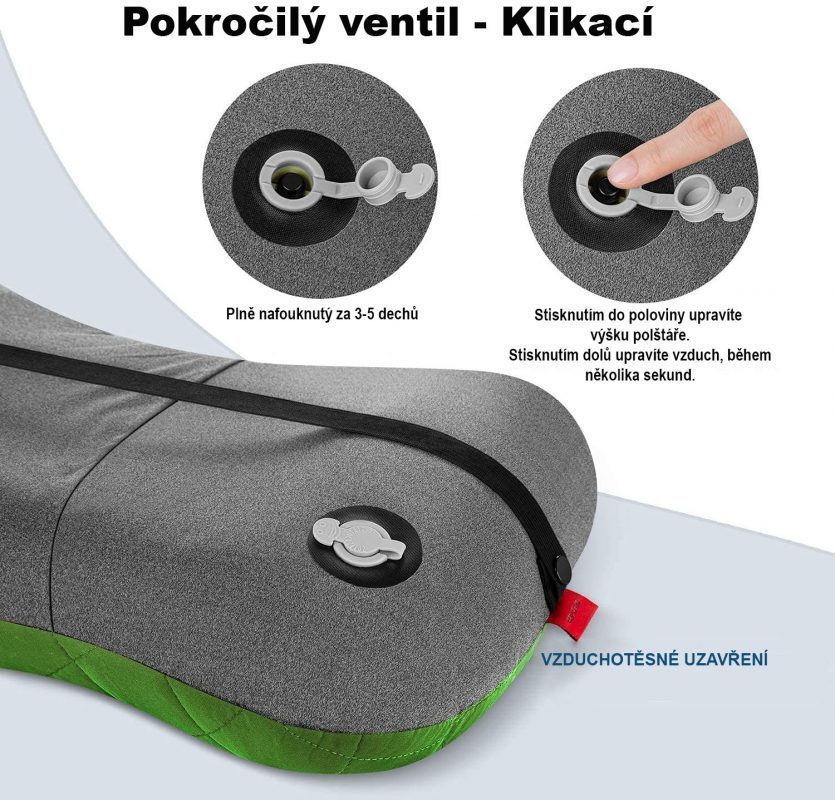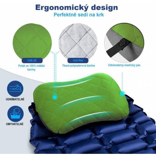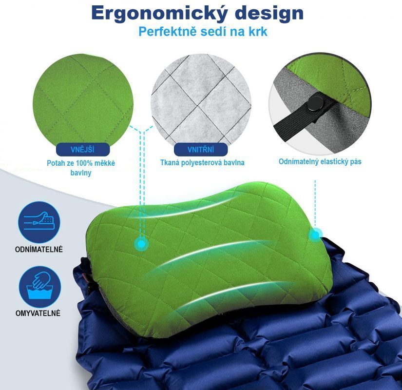 Ergonomický a protiskluzový design: Cestovní polštář Hikenture má ergonomický tvar, který poskytuje maximální komfort při kempování i na cestách.