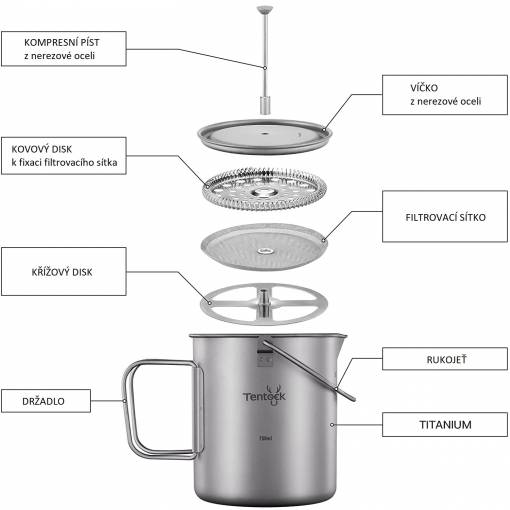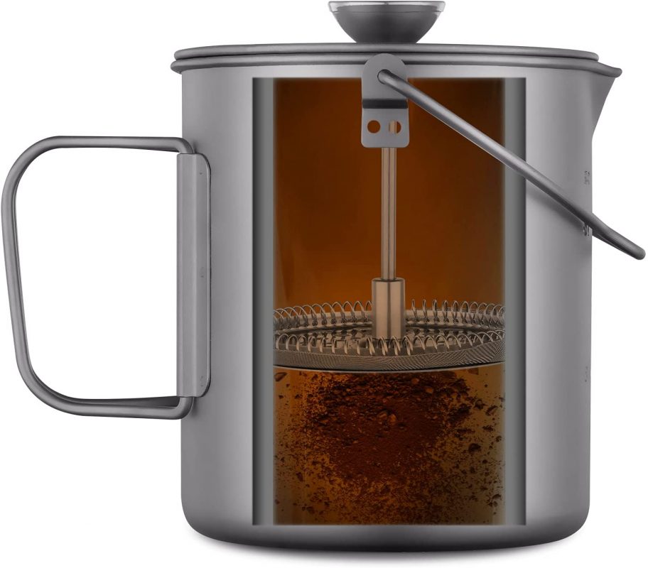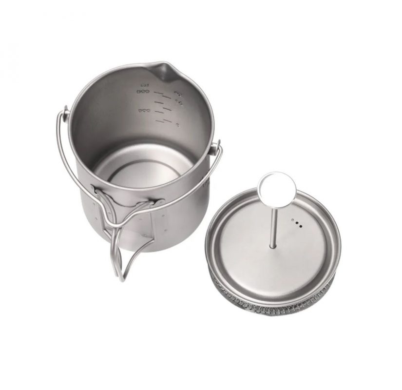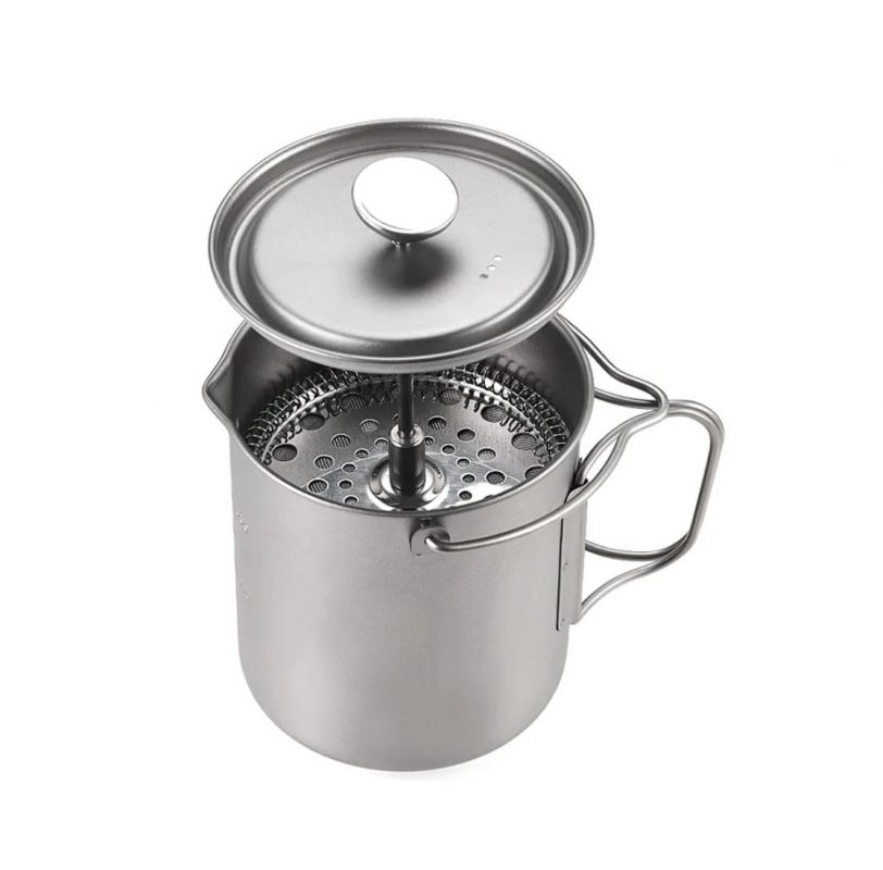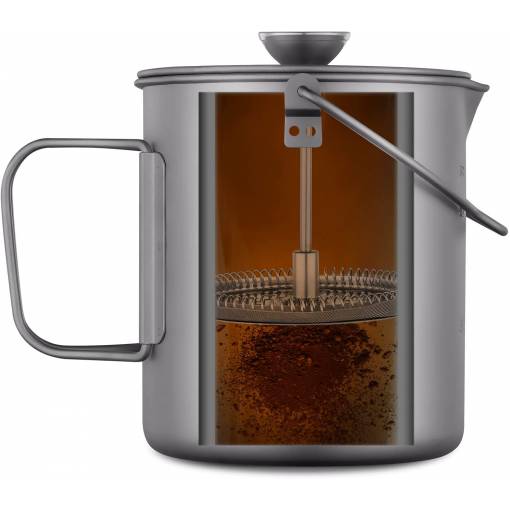 Velice kvalitní outdoorový french press. Je vyroben z titania, proto je ultralehký a přesto odolný, šetrný k životnímu prostředí, biokompatibilní, antibakteriální a bezpečný pro dlouhodobé používání.