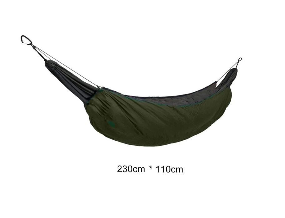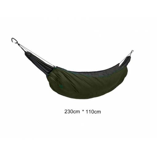 Tento zateplený obal se snadno připevňuje a sundává. Má nastavitelné popruhy pro lepší vypnutí, lze ho ale také použít jako deku do stanu pro zajištění většího tepla, popř. i dovnitř samotné hamaky.