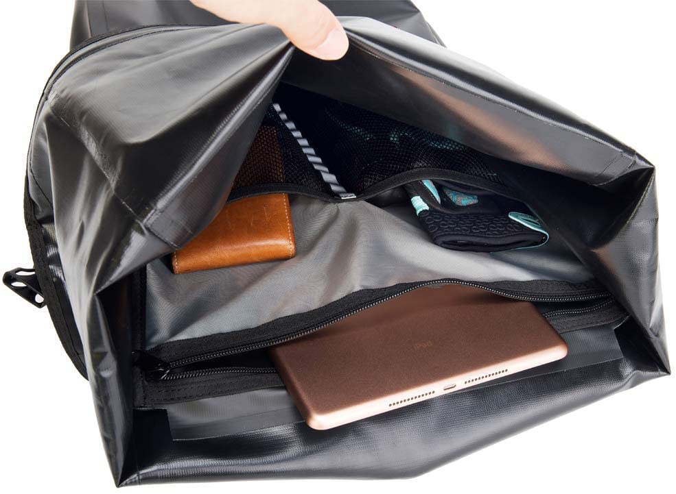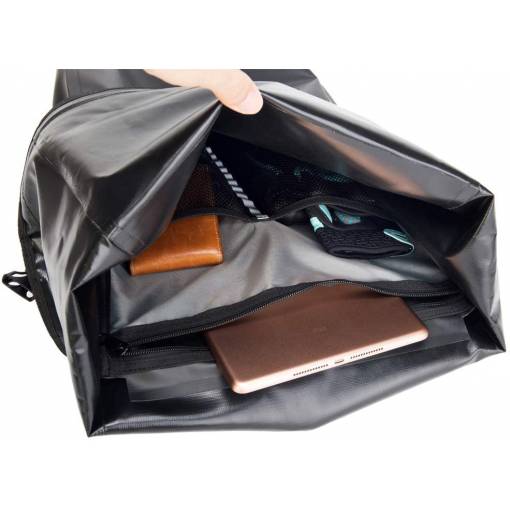 Díky 100% vodotěsnému materiálu a rolovacímu zavírání brašny, zajištěného přezkou, zůstanou Vaše věci v suchu a v bezpečí, bez ohledu na počasí.