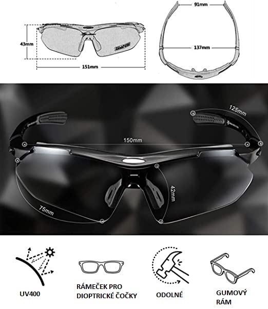 Ultralehké: S hmotností pouhých 30 gramů brýle sotva ucítíte na nose. Díky měkkému gumovému polstrování i nožičkám nikde netlačí a jsou vhodné i pro dlouhodobé nošení. Ideální pro cyklistiku, běh, horolezectví, řízení auta aj.