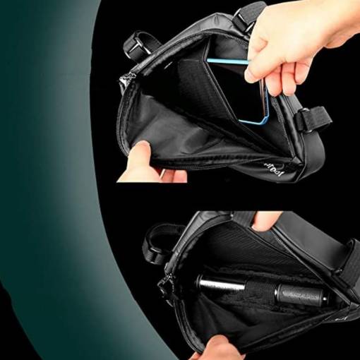 Praktická brašna do rámu kola je vyrobena z 600D polyesteru, který vyniká dlouhou životností a snadnou údržbou.