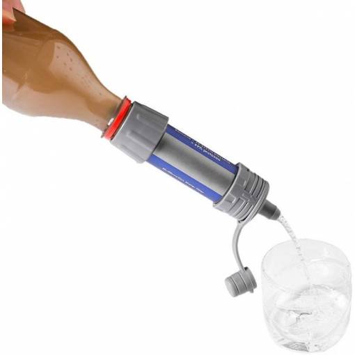 - Vodu naberete do lahve, filtr našroubujete na hrdlo a vyberete si ze dvou možností - pít přímo z lahve přes filtr nebo pomocí přiložené hadičky nechat tekutinu přes filtr překapat do jiné nádoby.