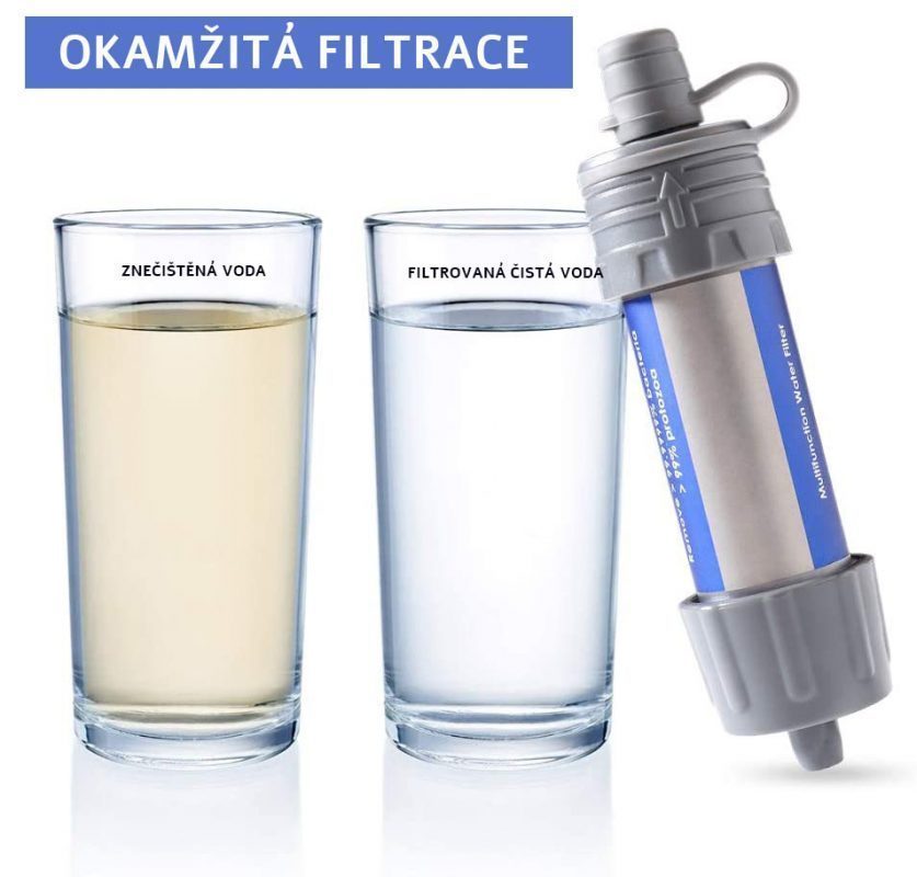 Přefiltruje bezpečně až 5000 litrů vody z jakéhokoliv zdroje, např. z rybníku nebo z řeky.