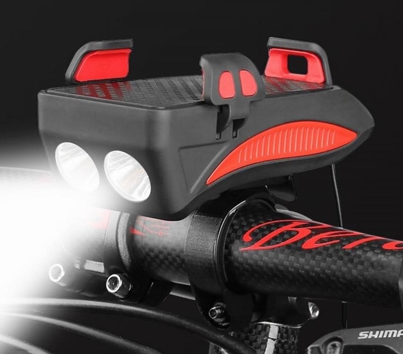 LED světlo na kolo o svítivosti 400 lumenů se třemi režimy intenzity (silné světlo, slabé světlo, blikání). Má nastavitelný držák v rozmezí 5 - 8 cm, vhodný pro většinu mobilních telefonů, se zabudovanou ochranou proti otřesům.