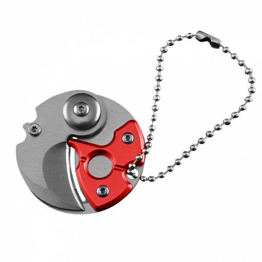 Šikovný, skládací, kapesní mini nožík s kompaktním kulatým designem, který si můžete snadno zavěsit na klíče nebo batoh pomocí přiloženého řetízku, a mít ho tak neustále při ruce.