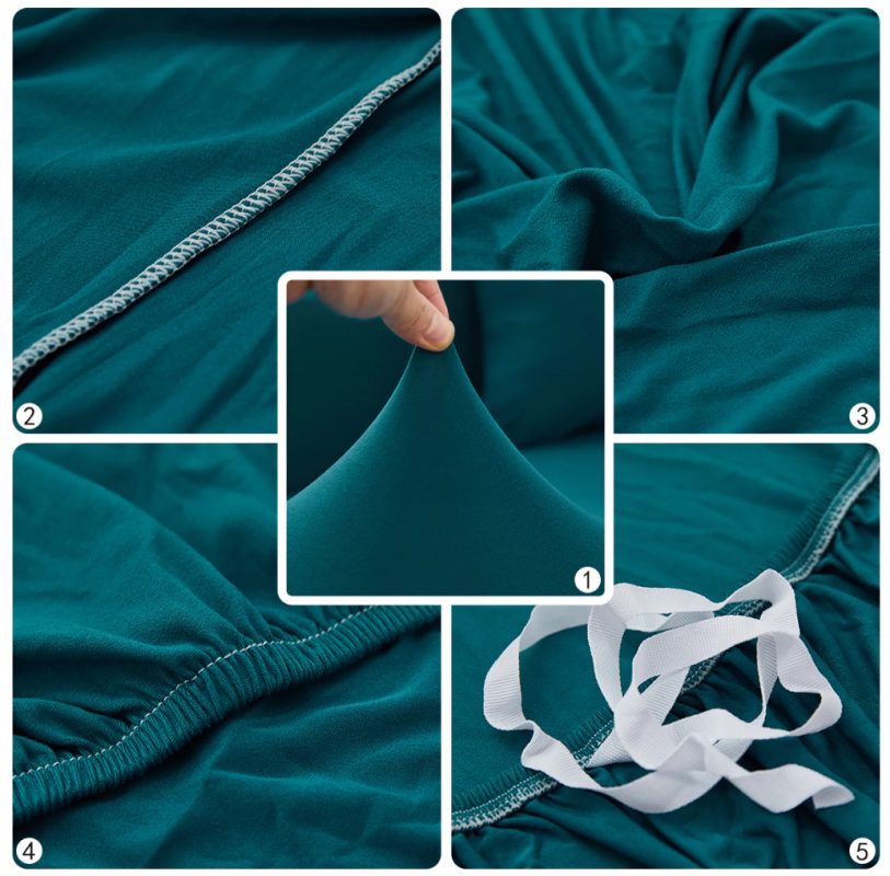 Elastický, pružný potah z kvalitní, prodyšné látky, která sedí na trojmístnou rovnou pohovku.