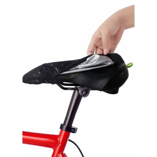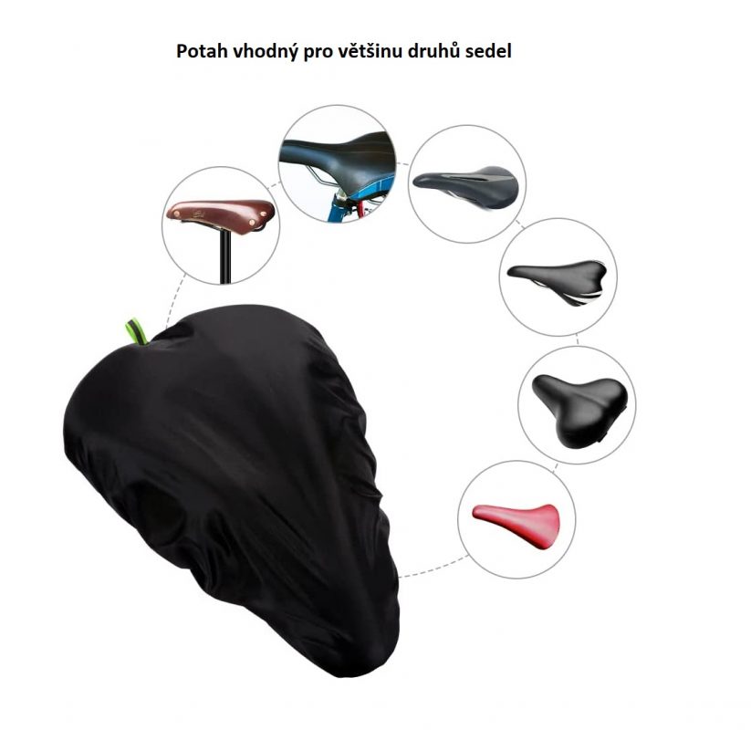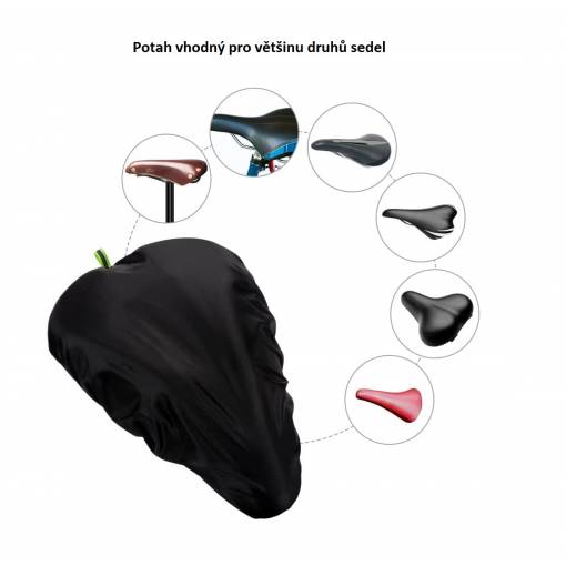 Potah (pláštěnka) je vyrobený z polyesterového taftu s vodotěsnou vnitřní vrstvou. Zamezí průniku vody, slunečního světla a nečistot k sedlu Vašeho kola, čímž prodlouží jeho životnost.