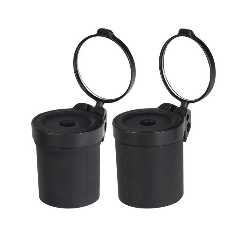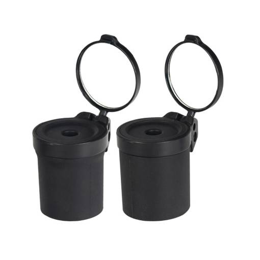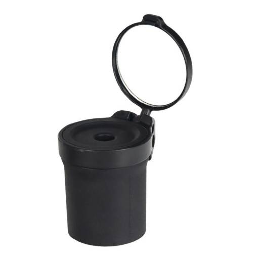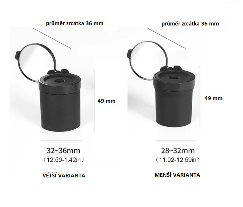 Pod uzavíratelným plastovým krytem na vnějším konci se nachází šikovné zpětné zrcátko, které lze otáčet o 360° a nastavit tak do jakéhokoliv požadovaného úhlu.