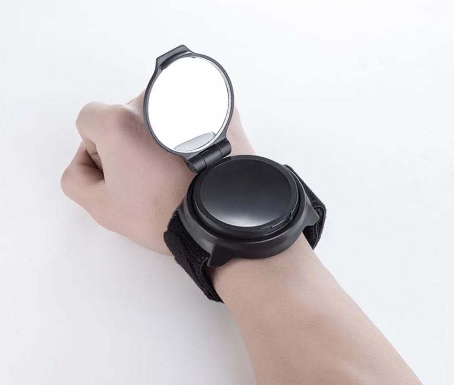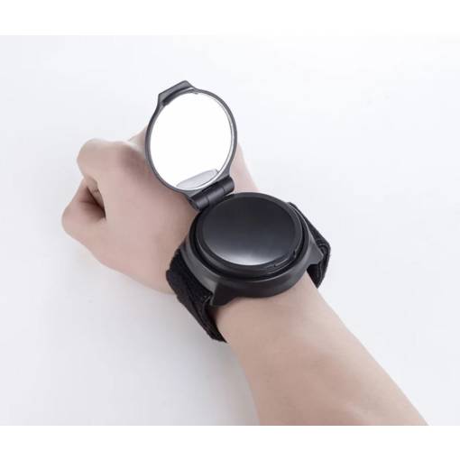Zpětné zrcátko s nastavitelným řemínkem na suchý zip upevníte kolem zápěstí jako hodinky.