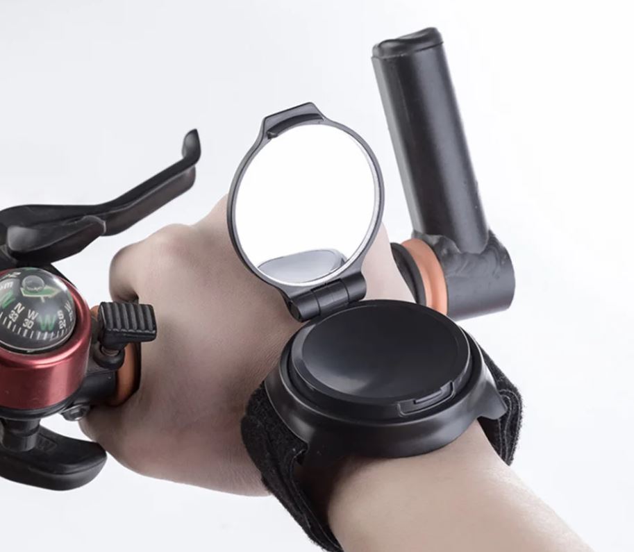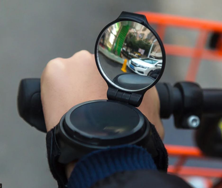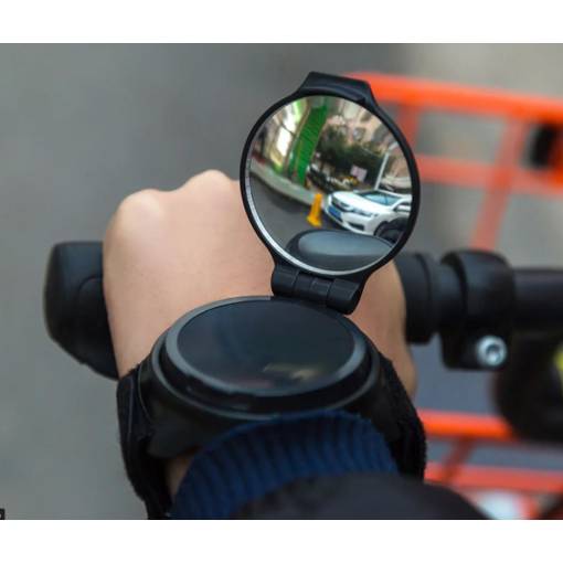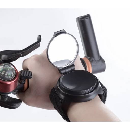 Zpětné zrcátko je díky libovolné možnosti otočení vhodné pro nošení na pravém i levém zápěstí.