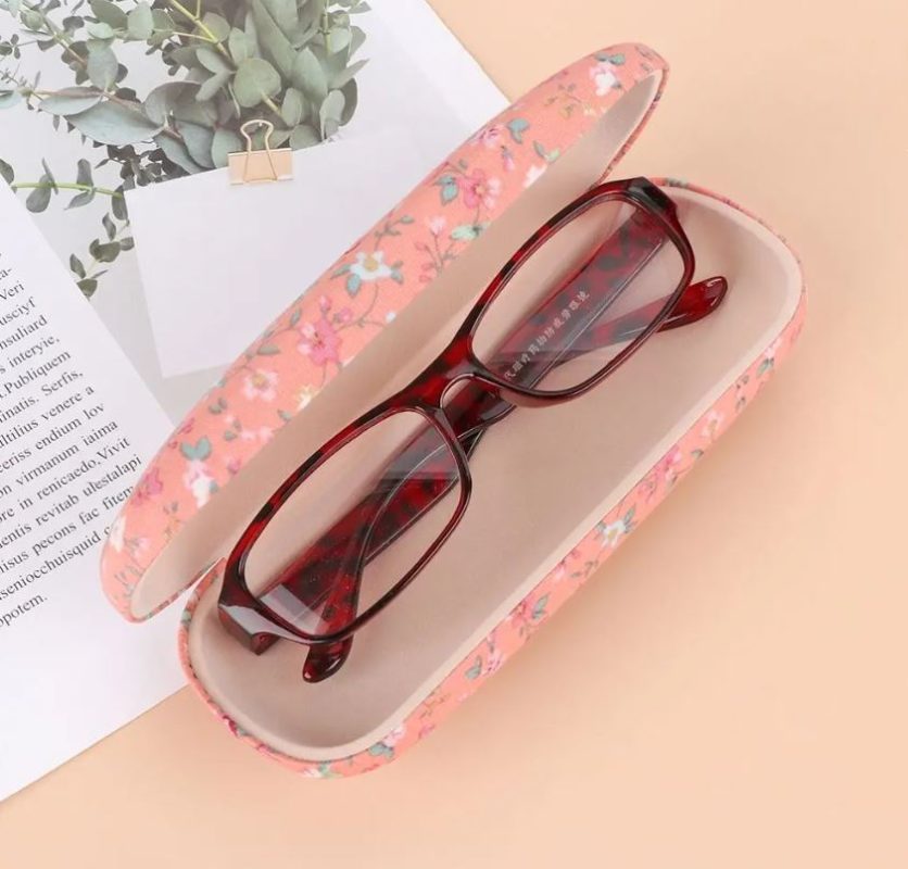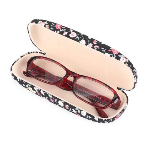 Pevné pouzdro na brýle s měkkým látkovým povrchem s potiskem květin ochrání Vaše brýle před poškozením a nečistotami.