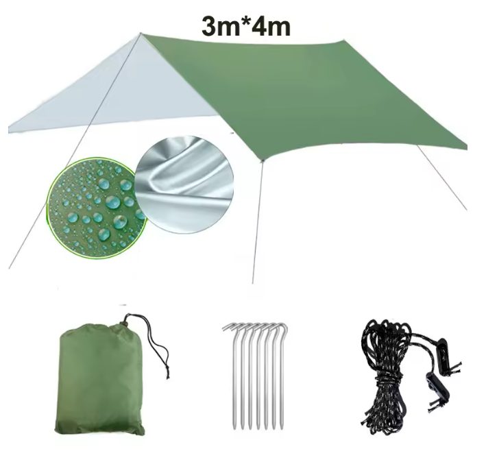 • 1 x kempovací plachtu 3x4 m, lano, 6x kotva, povlak.