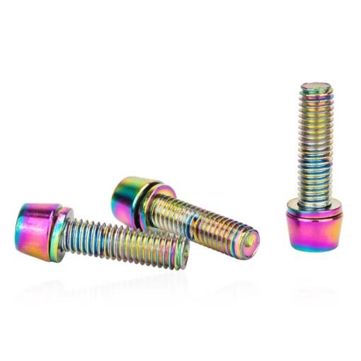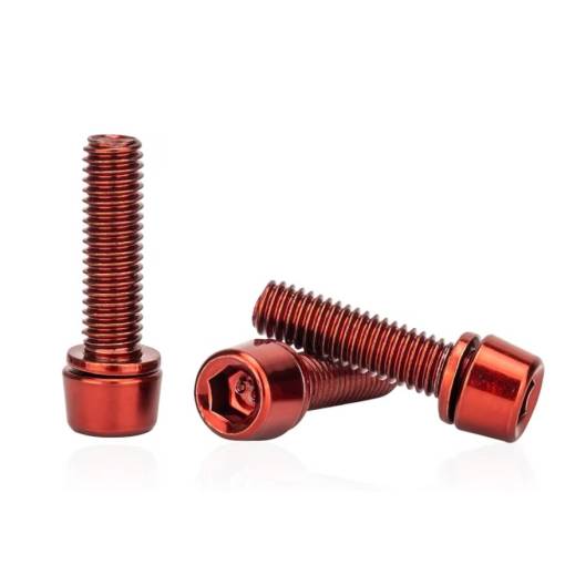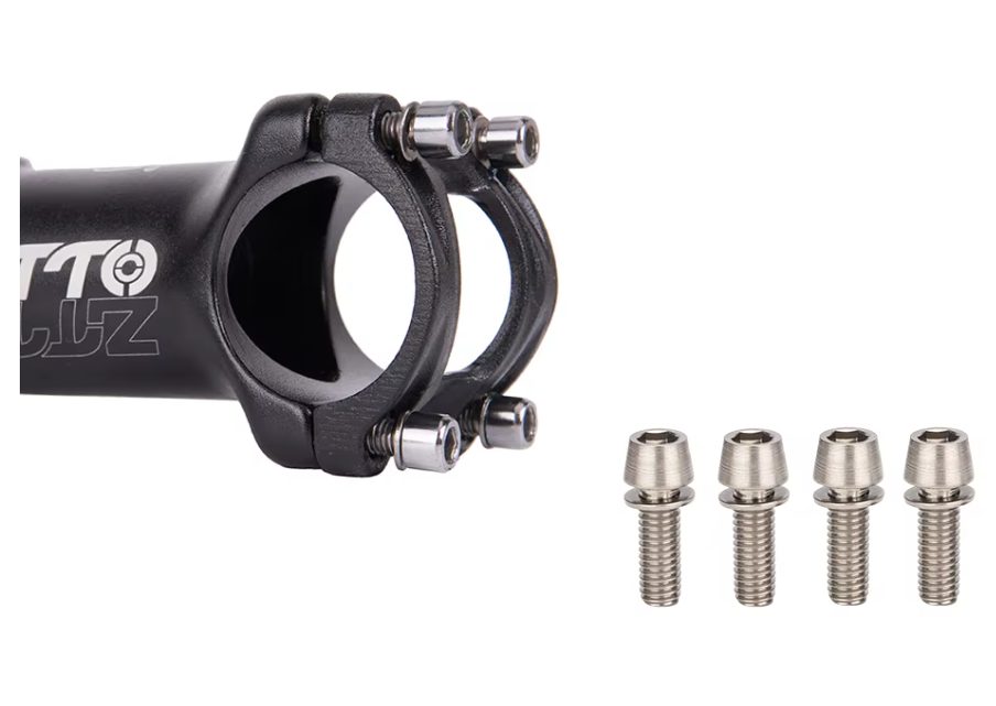 Titanové šrouby určené pro upevnění představce řídítek jízdních kol. Díky preciznímu závitu, vysoké pevnosti a nízké hmotnosti představují ideální volbu pro náročné cyklisty, kteří dbají na spolehlivost i vzhled svého kola. Vhodné pro horská (MTB), silniční i městská kola.