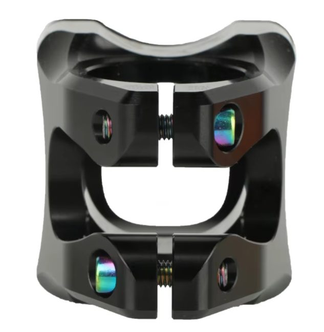 Upínání na řídítka o průměru 31,8 mm a sloupek vidlice 28,6 mm umožňuje kompatibilitu s většinou moderních kol. Stylový vzhled podtrhuje povrchová úprava šroubů s titanovým efektem, která nejen dobře vypadá, ale zajišťuje i pevné a bezpečné uchycení.