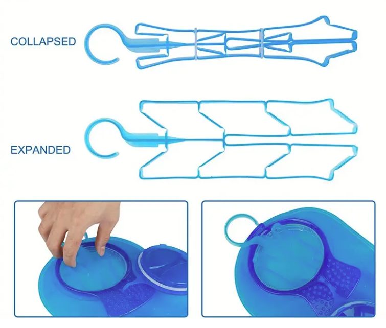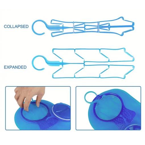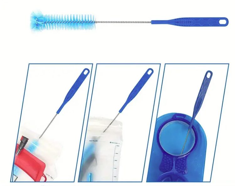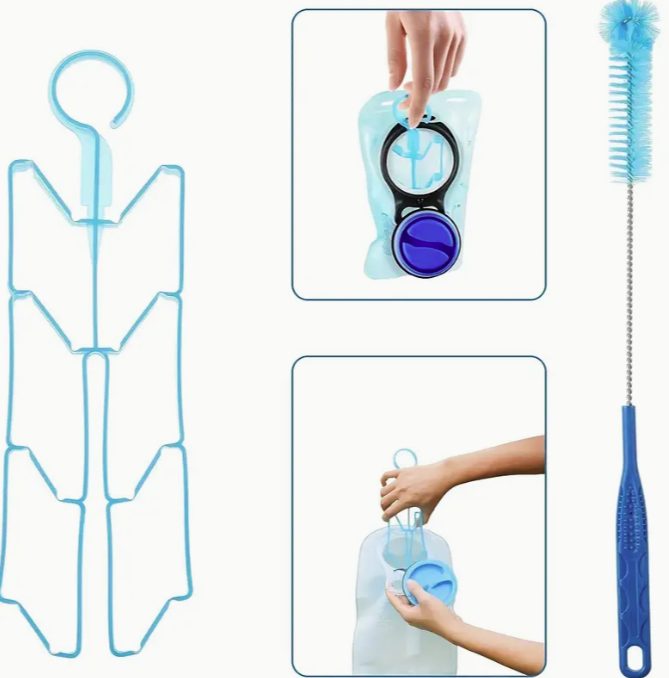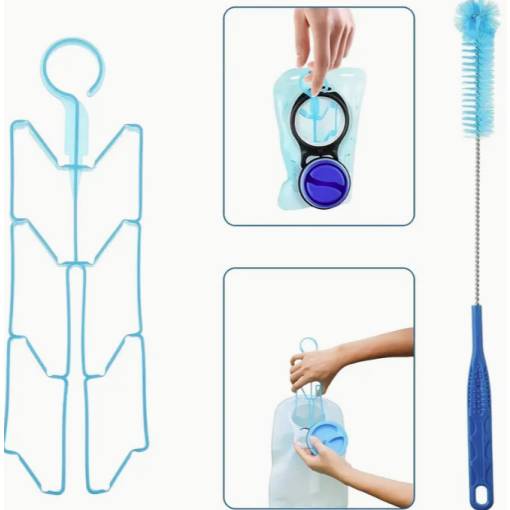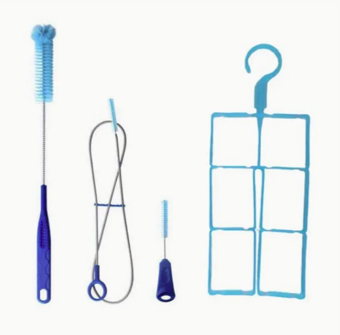 Praktický skládací věšák zajistí rychlé a důkladné vyschnutí bez vzniku plísní, zatímco dlouhý kartáč s odolnými štětinami a kompaktní kartáček na hadičku spolehlivě odstraní veškeré usazeniny.