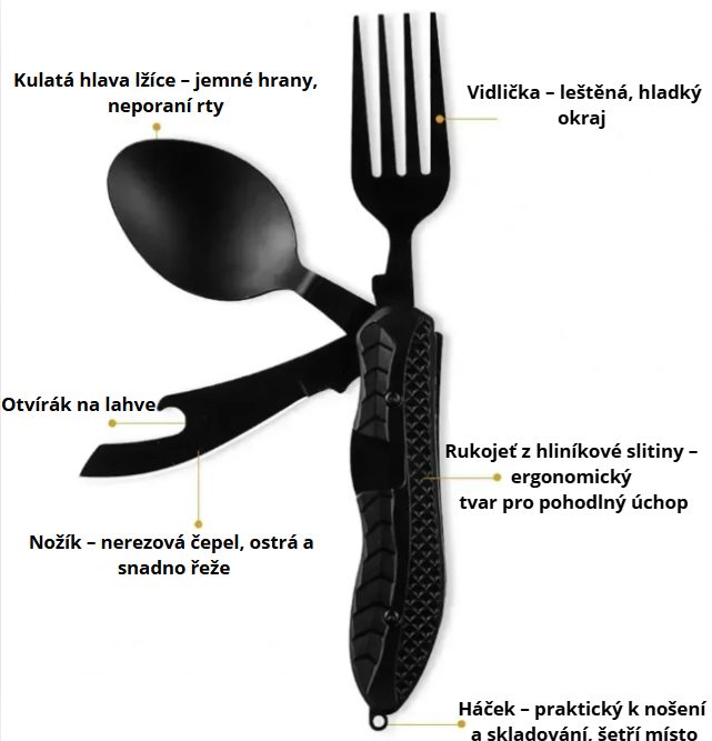 Objevte praktický skládací příbor 3 v 1 z kvalitní nerezové oceli, který se vejde do každé kapsy i batohu.