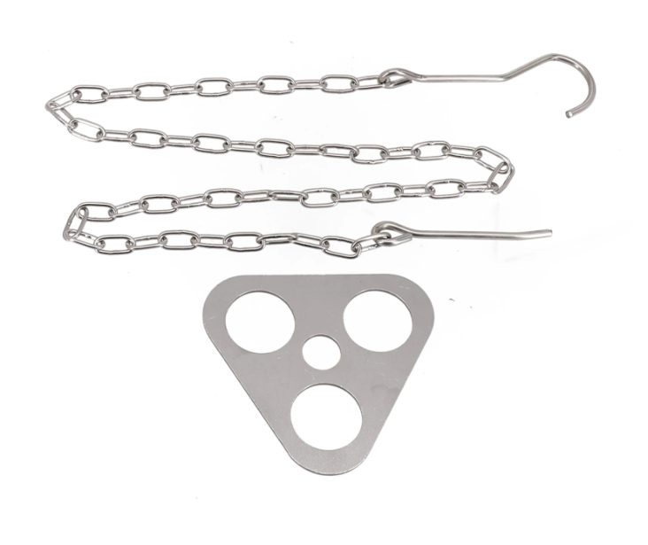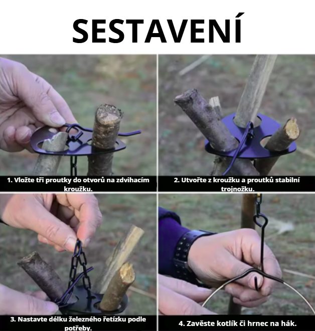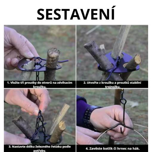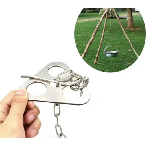 Praktický, nastavitelný řetízek s karabinou umožňuje snadné a přesné ovládání výšky zavěšení kotlíku či hrnce nad ohněm, takže máte dokonalou kontrolu nad intenzitou ohně a teplotou vaření.