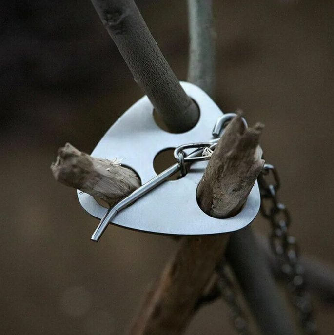 Tento závěsný držák z odolné nerezové oceli je nezbytným doplňkem pro každého milovníka kempování či víkendových výletů do přírody.