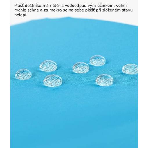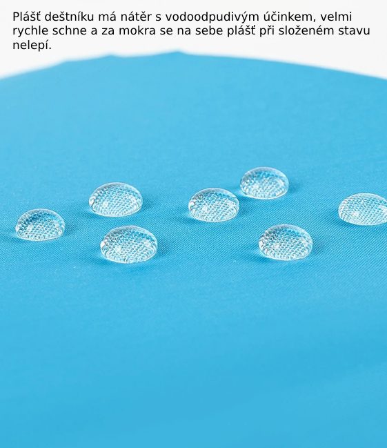 Plášť deštníku je vyroben z kvalitního polyesteru, což je materiál známý svou odolností vůči povětrnostním vlivům, rychlým schnutím a dlouhou životností. Tento materiál také dobře odolává vyblednutí barev při vystavení slunečnímu světlu.