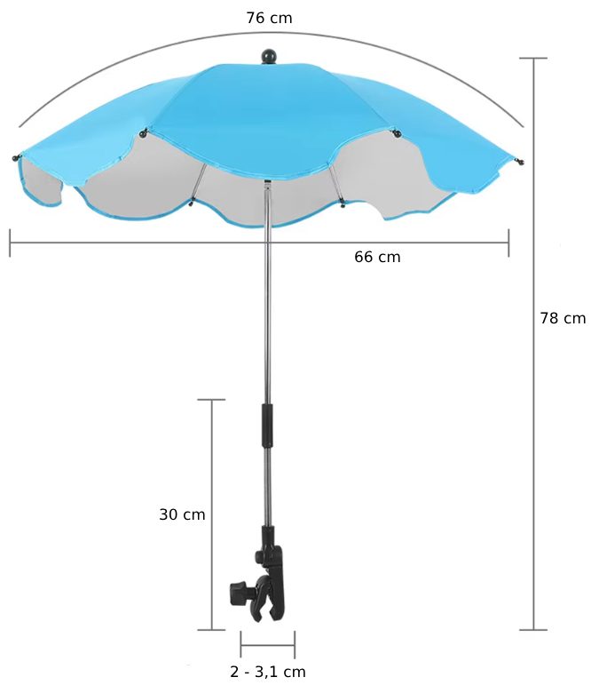 • Průměr deštníku: cca 76 cm (viz fotografie produktu)