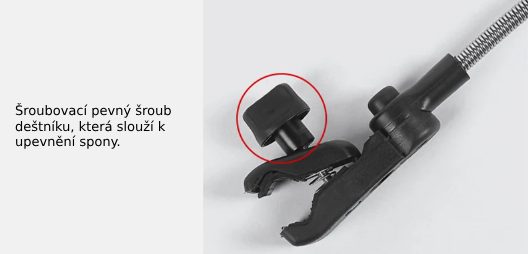 Upínací mechanismus je z vysoce kvalitního plastu, který je pevný a odolný. Díky tomu spolehlivě drží deštník na místě a vydrží i časté manipulace bez opotřebení.