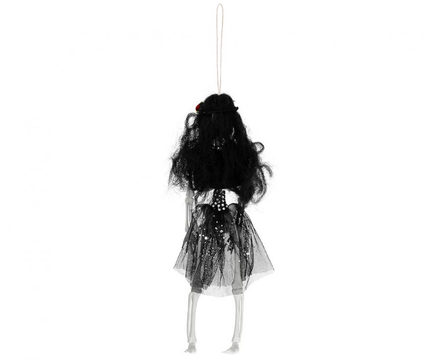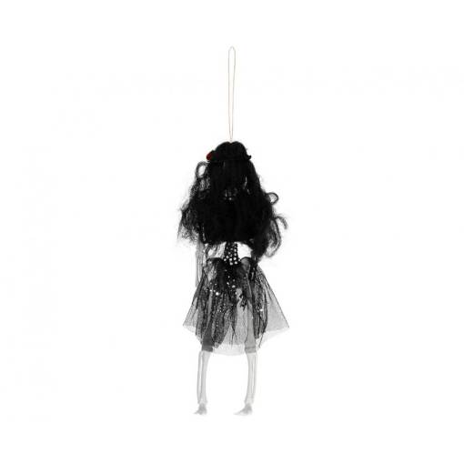 Vytvořte doma tu správnou strašidelnou atmosféru s originální závěsnou dekorací. Figurína má černé šaty s tylovou sukní. Ve vlasech má barevnou květinu, což dodává dekoraci neobvyklý a zároveň děsivý vzhled.