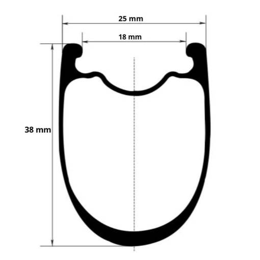 - Rozměry: 38 mm výška ráfku, 25 mm šířka (vnější), 18 mm šířka (vnitřní)