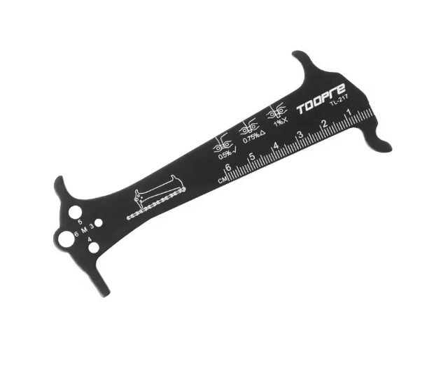 Nabízí měření v rozsahu 0,5 % – 1 %, takže je vhodná pro všechny typy řetězů. Díky integrovanému pravítku a měřicím otvorům na šrouby poslouží i jako praktický multifunkční pomocník.