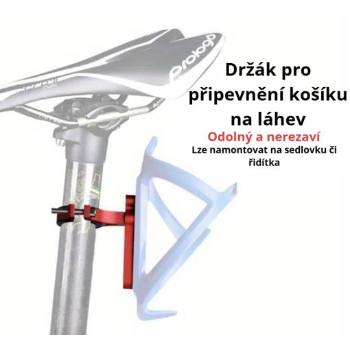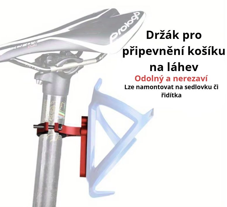 Univerzální držák umožňuje snadné připevnění košíku na láhev i tam, kde chybí klasické montážní otvory.
