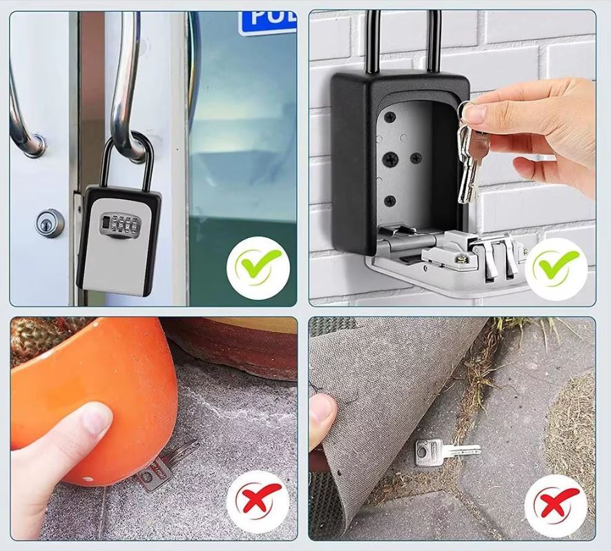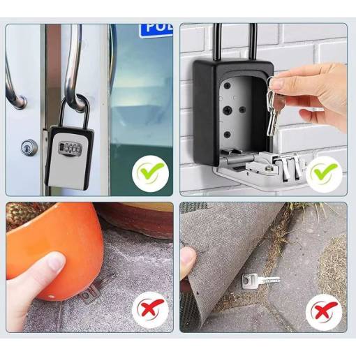 Tento odolný závěsný trezor na klíče kombinuje bezpečný 4místný mechanický kód, kvalitní materiály a variabilní použití. Díky pevnému oblouku funguje jako visací zámek, takže jej můžete jednoduše zavěsit na kliku, zábradlí či jiné pevné místo bez nutnosti vrtání.
