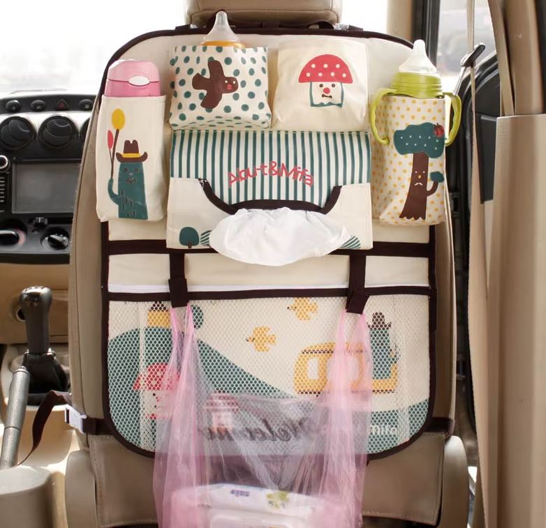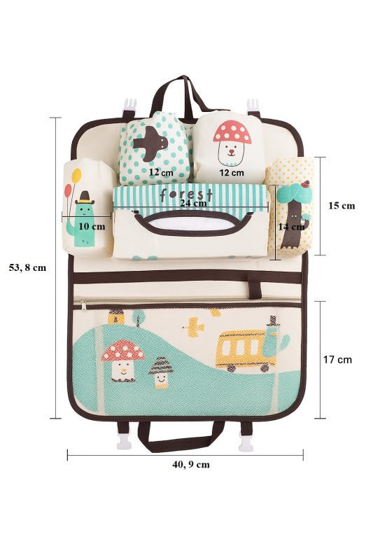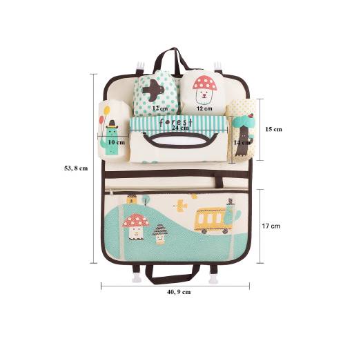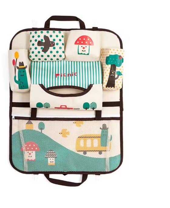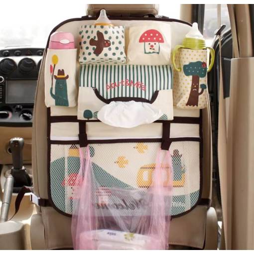 Tento víceúčelový závěsný organizér na zadní stranu autosedačky poskytuje přehledné uložení věcí na cestách. Díky promyšlenému rozložení kapes lze snadno uložit láhve, ubrousky, tablet, telefon, drobnosti, hračky, časopisy či další cestovní potřeby. Umožňuje tak udržet interiér vozu čistý a organizovaný.