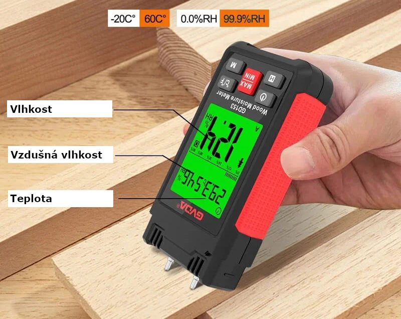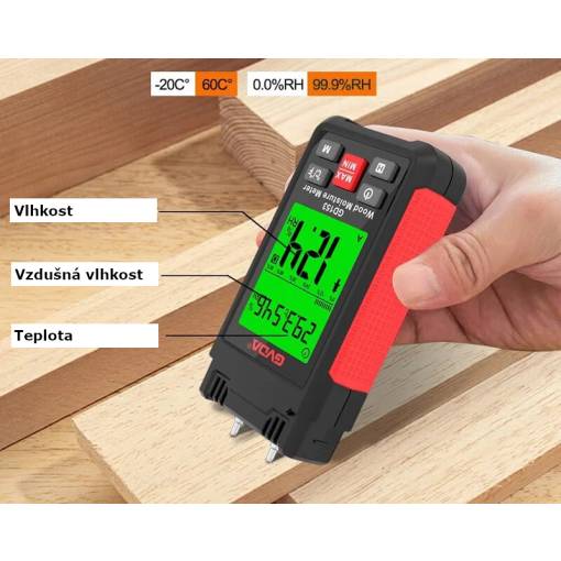 1x Digitální měřič vlhkosti dřeva a stavebních materiálů