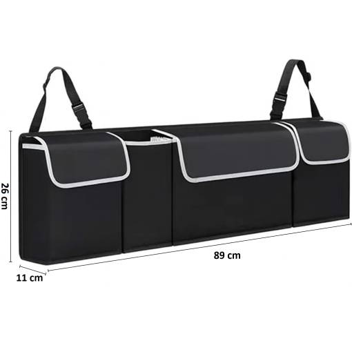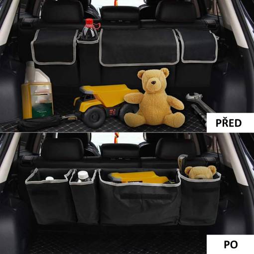 Organizér nabízí dostatek úložného místa pro všechny nezbytnosti – od autokosmetiky a nářadí až po hračky, nákupy nebo potřebné drobnosti na cestách.