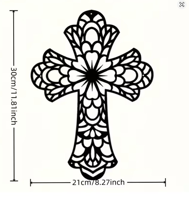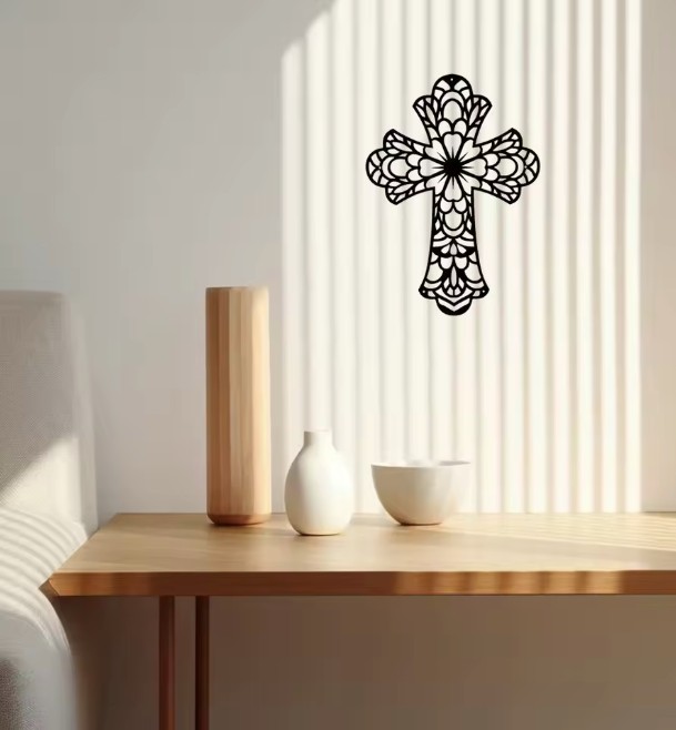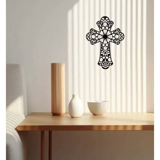 Vytvořte doma atmosféru klidu, harmonie a elegance díky tomuto stylovému kovovému kříži s jemným ornamentálním vzorem. Precizní laserový výřez vytváří působivý a lehký design, který na zdi působí téměř jako kresba – čistě, moderně a přitom s nádechem něžnosti.