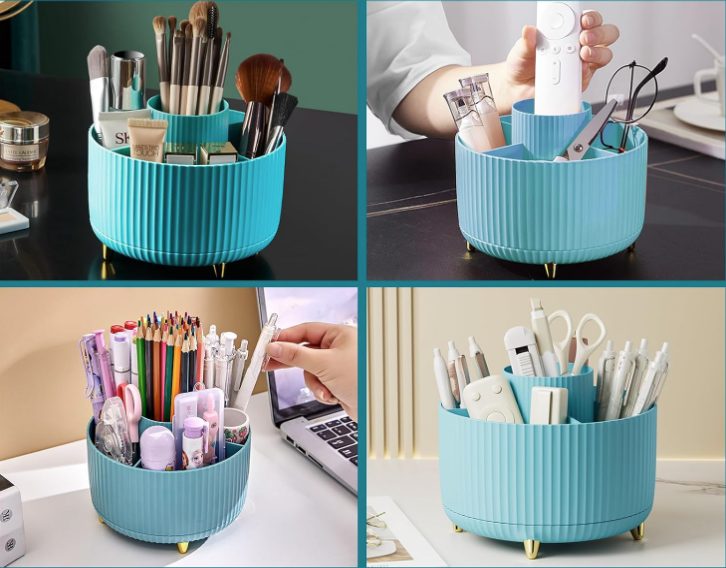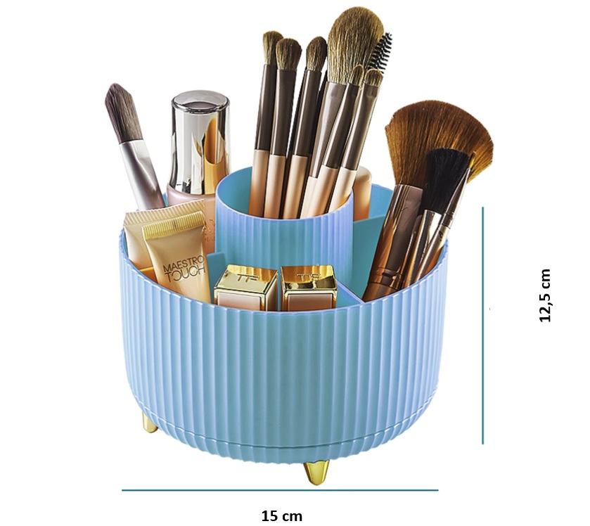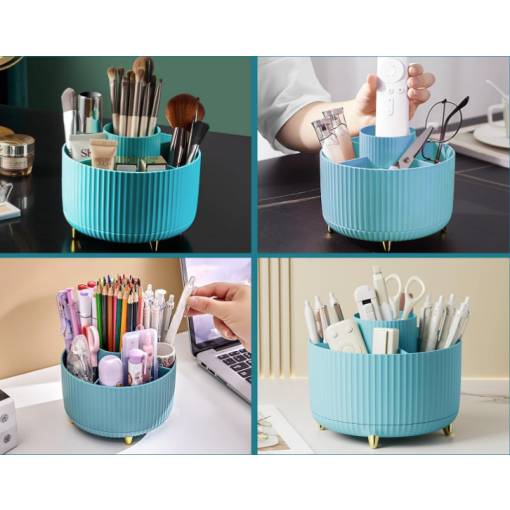 Stylový a praktický organizér s otočnou základnou vám pomůže udržet pořádek na toaletním stolku, v koupelně i na pracovním stole. Díky 360° rotaci máte vše vždy po ruce.