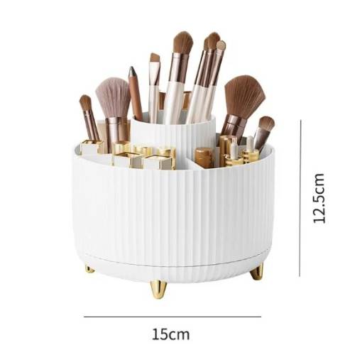 Stylový a praktický organizér s otočnou základnou vám pomůže udržet pořádek na toaletním stolku, v koupelně i na pracovním stole. Díky 360° rotaci máte vše vždy po ruce.