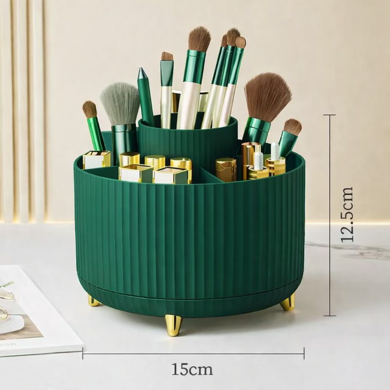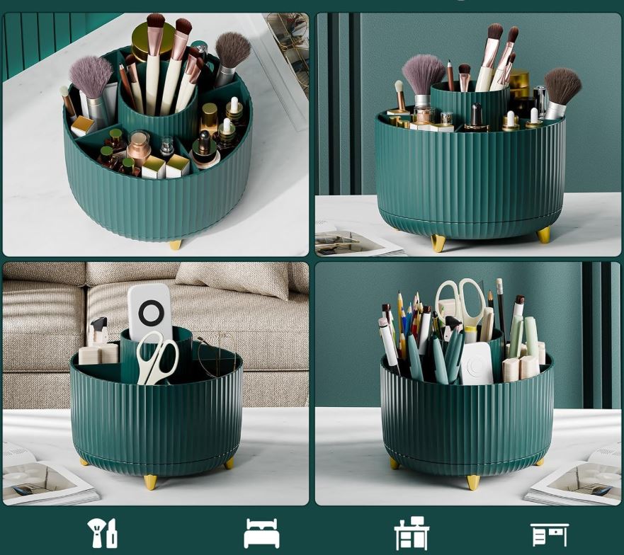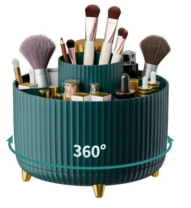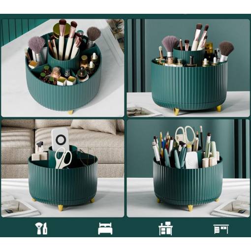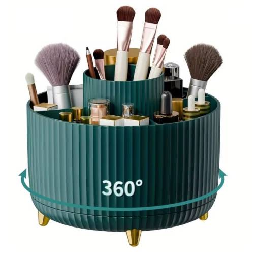 Stylový a praktický organizér s otočnou základnou vám pomůže udržet pořádek na toaletním stolku, v koupelně i na pracovním stole. Díky 360° rotaci máte vše vždy po ruce.