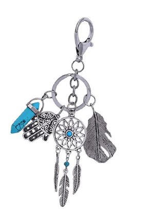 Přívěsek na klíče - Lapač snů s kamenem - Tmavě zelený