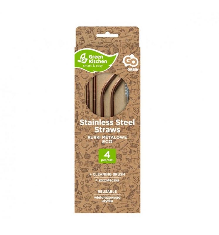 Balení obsahuje 2 rovná brčka, 2 zahnutá brčka a 1 čistící kartáček.